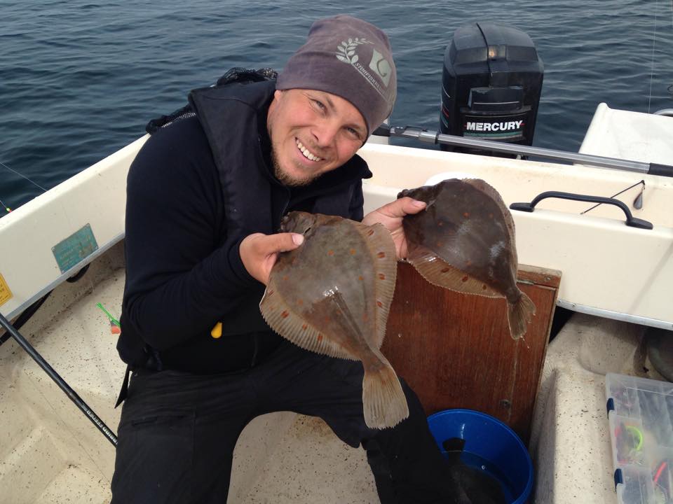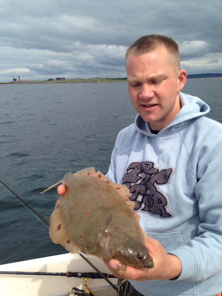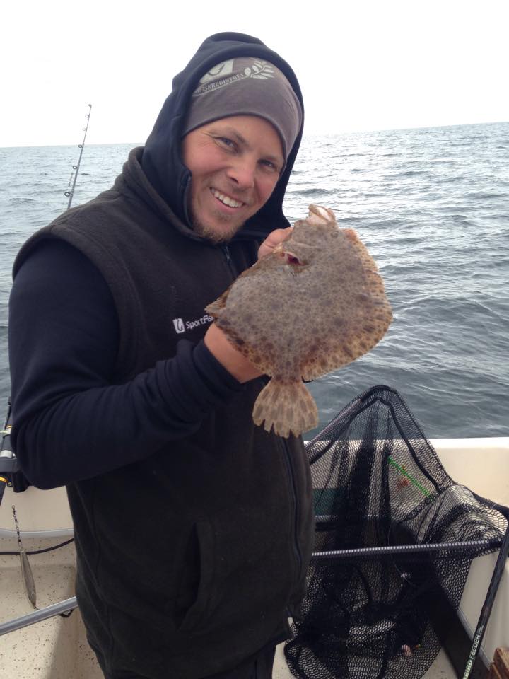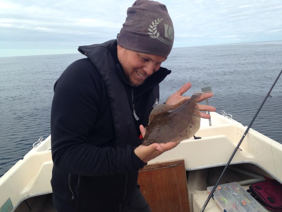 Det nappade dock direkt och första fisken i Adams båt blev en riktigt fin rödspätta!