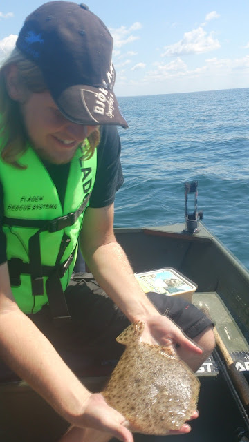 Vi fiskade på ett tag till och Arvid hann dra ifrån i dagens obligatoriska arttävling medelst piggvar och fjärsing - övriga arter som båda fångade var knot, spätta, skrubba och skamskädda.
