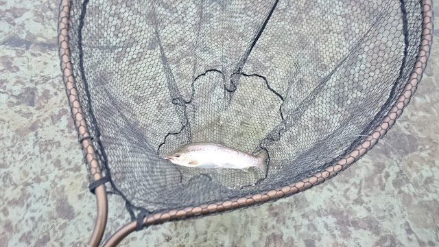 Frånlandsvinden krusar ytan, de tunga molnen går ihop med havet. Det låga vatten gör att man kommer långt ut på pallen. Vattnet är kallt men de nya vadarna håller mig varm. Får mig att slappna av och känna att jag smälter in. Jag trivs här. Det här är mitt element. Lägger några kast utåt, mot det djupa.