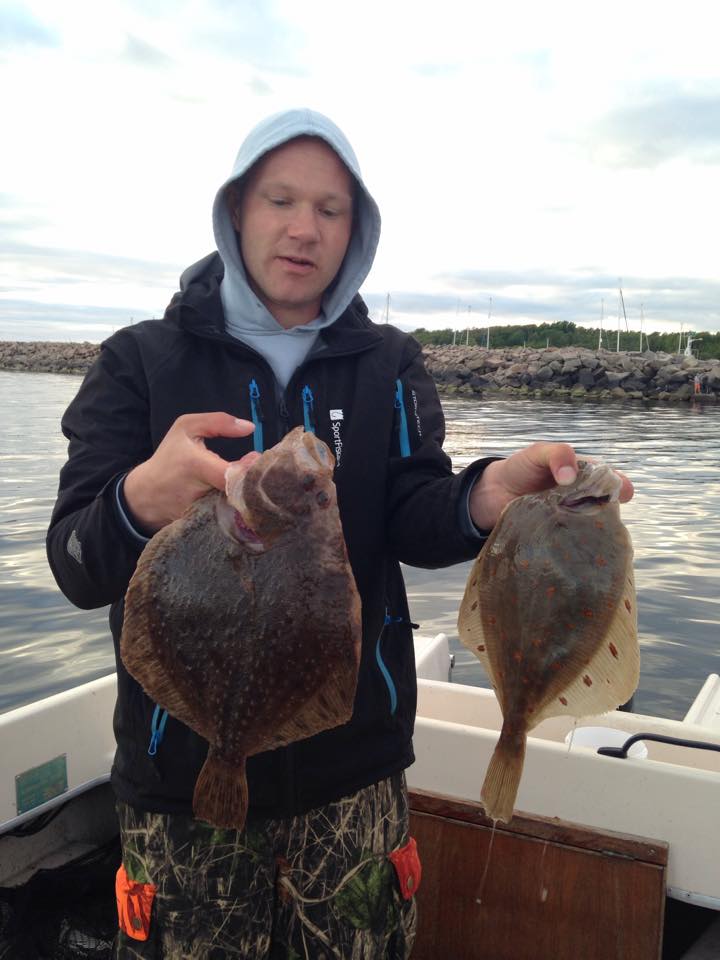 Adam stoltserar med fin spätta och regpiggvar från ett legendariskt pass i månadsskifter maj-juni där jag och Adam fixade många middagar med rödspätta i Laholmsbukten!