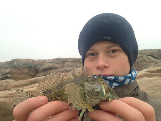 Ibland var det annat som nappade, besvikelsen var stor men maskeringskrabban fick en puss ändå!
