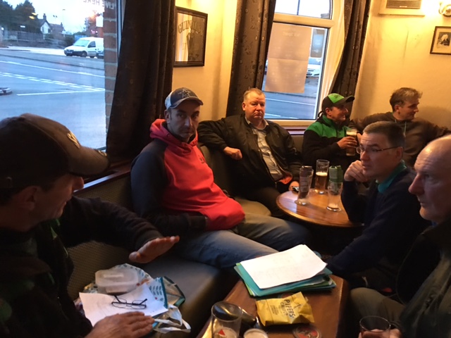 Back in the pub after and Match organiser completing the results sheet