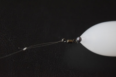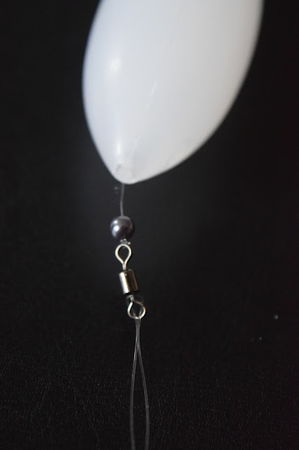 Trä på ett flötesstopp på huvudlinan, sedan en 4 mm pärla och därefter kontrollern, en ny 4 mm pärla och lekandet knyts fast och tafsen monteras och du är klar för fiske.