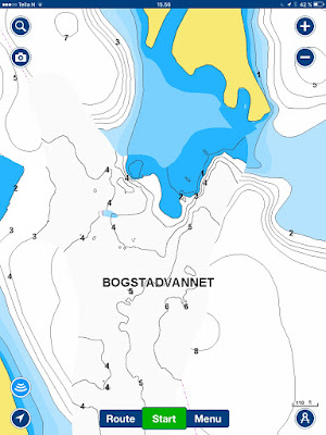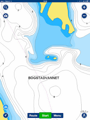 Her er et par skjermbilder fra Navionics Boating mens jeg bruker Sonarcharts Live for å kartlegge Bogstadvannet. Bildene viser før og etter: