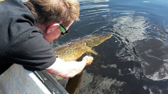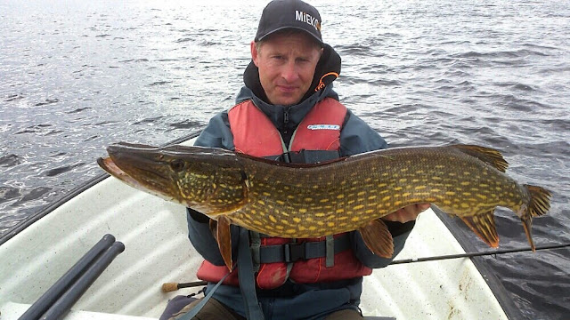 Vi fortsätter att fiska och direkt krokar jag en kämpaglad gädda som får mig att hoppas på något bättre. Den är dock mindre än jag trodde och hoppades på men ändå en fin fisk. 7700 gram. Sammantaget ett lyckat fiskpass efter några tröga fisken med bara fåtalet hugg.
