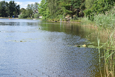 .... gubben hinner inte ens lägga ifrån sig kameran förrän det drar iväg på nästa spö och denna landades efter att ha gått fast i näckrosor och en större gren och jag fick gå ut och hämta den ... tur man har vackra ben och shorts!
