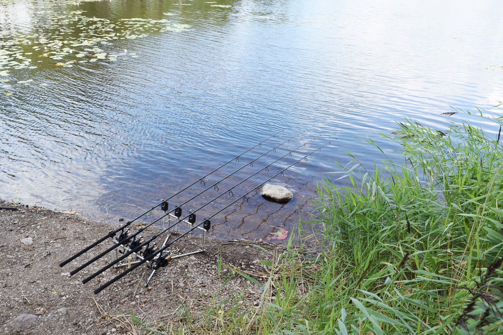 Det var lugnt i 2 timmar, men sen steg pulsen lite, gräskarpen gick inne i vasskanten och bökade i bottnen och jag planerade som vanligt vad som som skulle hända och hur jag skulle fixa det.
