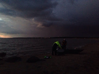 När vi så till slut packade ihop hade solen försvunnit bak horisonten och vattnet hade gumlats hårt av den senaste tidens regnande.