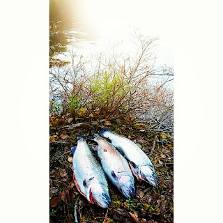 Fortsatt bra regnbågsfiske. Full pott både igår & idag & ett gäng tappade. Några upp till mat, resten returnerade. Så otroligt gött att vara ute dessa fina höstdagar!