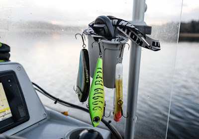 Jag hade med mig en ganska stor mängd beten som skulle testas med olika riggningar och viktningar. När man fiskar mycket med jiggar märker man snart att en del inte går riktigt som man vill i vattnet och såna beten gillar inte jag. Beten ska vara enkla att fiska med och såna som kräver duttande med extra balanseringsvikter eller ställer stora krav på att stingerkrokarna sitter perfekt linjerade, åker helt enkelt ut ur båten.