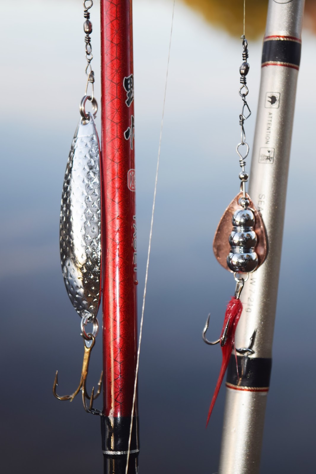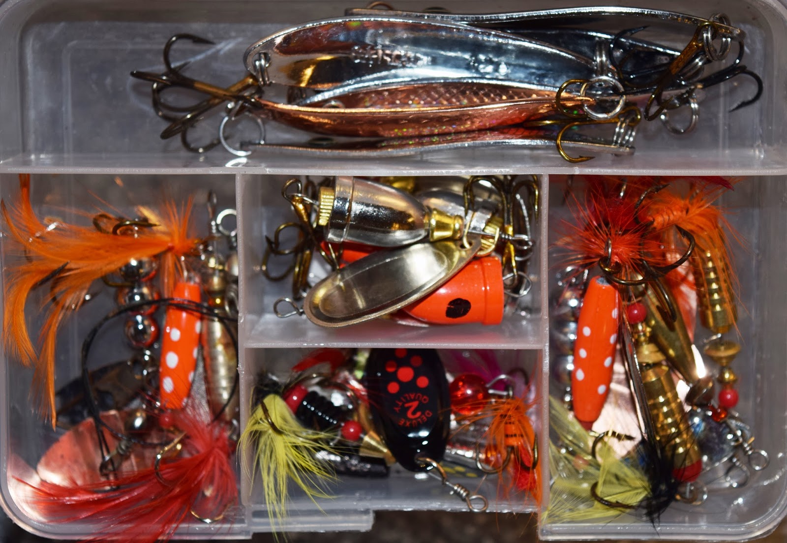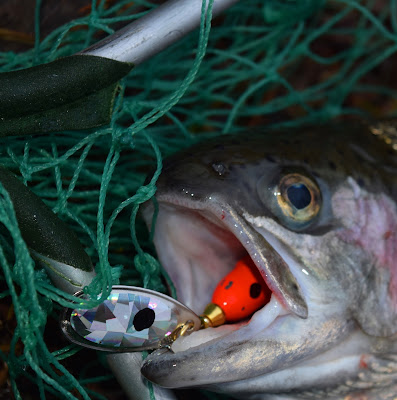 Spinnaren Mäsen till höge på bilden är också en av mina favoriter för Regnbåge och Öring, den är något dyrare,men värd sitt pris, jag gillar den i silver med kopparsked.