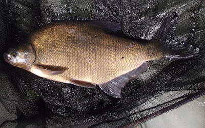 Jag hann inte ens sätta mig på parksoffan, innan jag fick dem karakteristiska bleeps från soffan och strax därefter vevade jag in dagens första Braxen och jag kunde ha spytt på den. Jag har Braxen när man fiskar karp, det är inte roligt med dessa störande fiskar, som dels kan ställa till oreda på riggarna och sen allt slem på riggarna, nä fy fan de kan gott hålla sig borta.