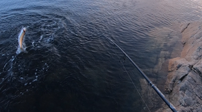 Och det blev kontakt vid första försöket men fisken klev av! Trots allt är det kul när det sprattlar - Grattis Marcus! Lurar själv på en tur i morgon bara det inte är för kallt. I dag har vi gjort några rundor i en Gavleå som går riktigt hög just nu. Men inga kontakter idag.