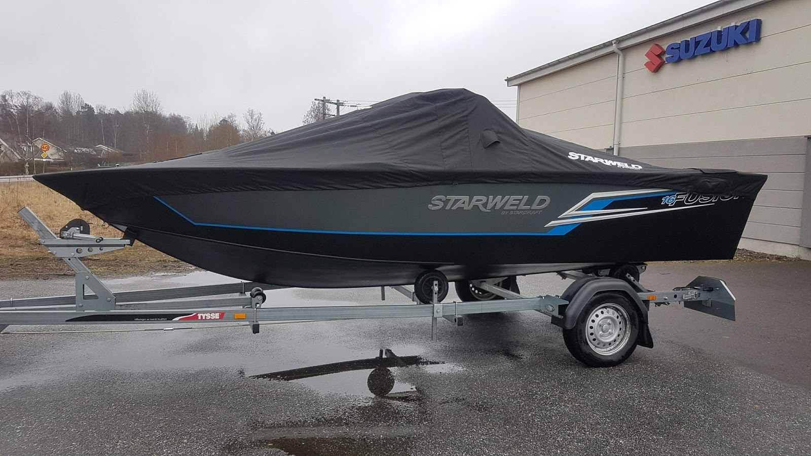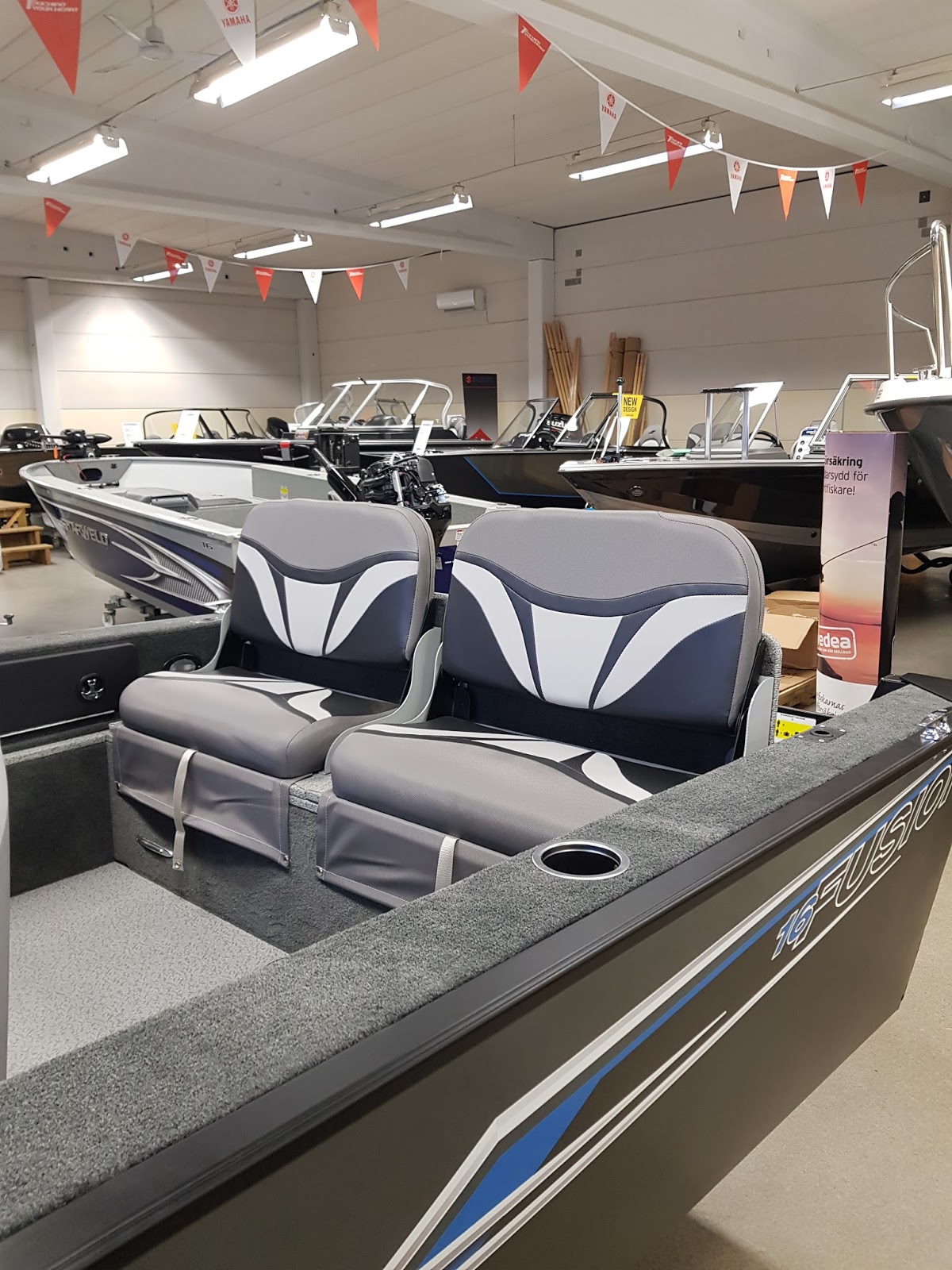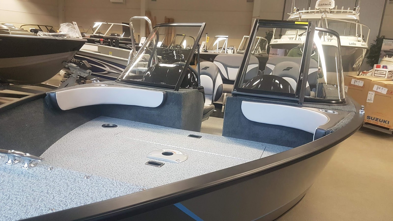 Været var ikke det fineste, her regnet det mye, men inne i lokalene stod det myyye spennede og skinte. Vi trodde egentlig at bygget til Borgs Motor skulle være større, men det var et bra antall båter i showrommet. Uheldigvis så ble vi for oppslukt av vår egen båt, så bilder av showrommet ble det lite av.