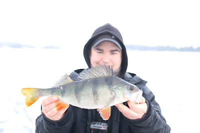 Tradisjon tro, skal man alltid fiske første januar. Og i år var ingen unntak. Jeg fikk dratt med meg Roger ut fra vinterdvalen for litt abborfiske.