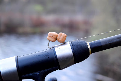 Små beten tas oftast först av karpen, sen dem större och dessa minis från Enterprise är suveräna, men man måste ha två för att hålla en större krok flytande. Som på bilden tar karpen dem oftast direkt, i tron att det är ett större bete, en munfull och mera mat.