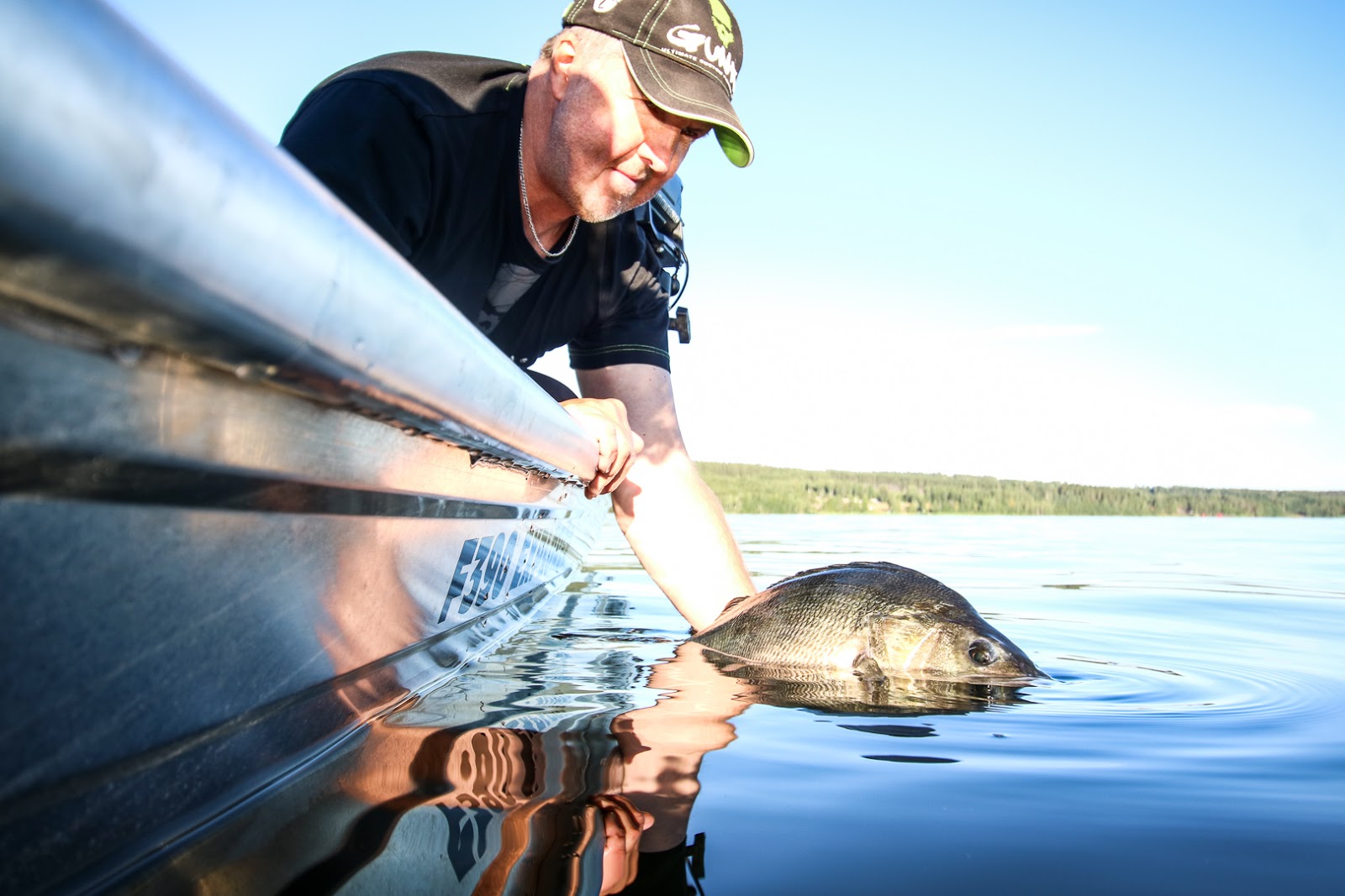 En av sjöns absolut vackraste giganter. Vågen tyngdes ner till 1570 och Jens kvittrade som en lärka. En drömfisk var landad.
