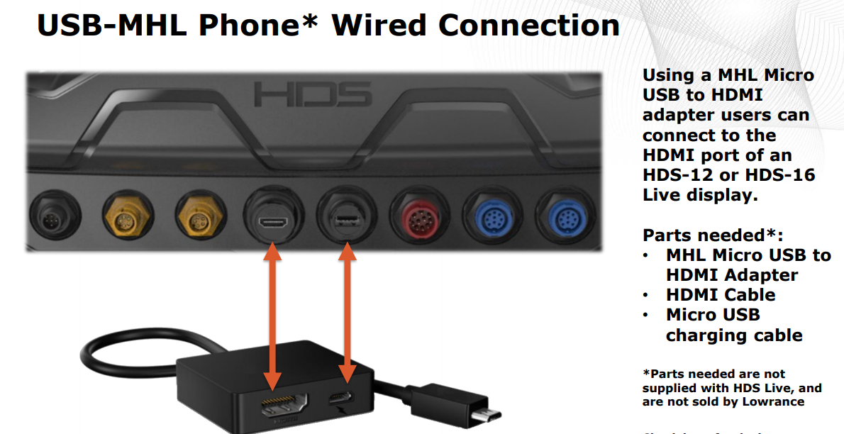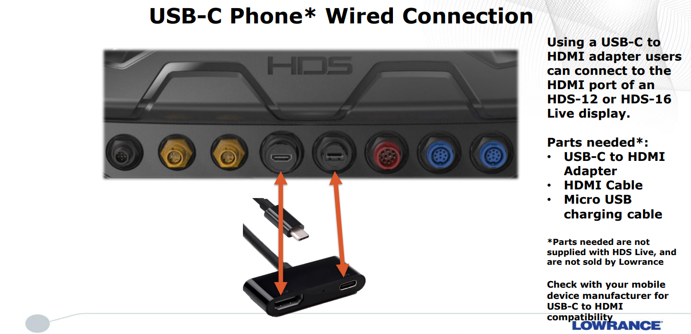 HDS Live har innebygget Blåtann og WIFI slik vi kjenner det fra tidligere generasjoner, men HDS Live får både nye tilkoblingsmuligheter tilpasset Android (Samsung etc) og IOS (Iphone) spesifikt, for å dra funksjoner du ellers har på telefonen din over på HDS-skjermen. To nye porter bak på HDS Live vil (uansett størrelse på HDSen) kunne gi deg full funksjonalitet: