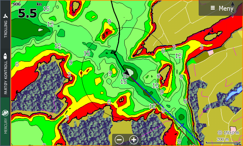 Da får du opp begge variantene av kurs på kartplotteren din, og så lenge båten kjører fremover i minst 3-4 knop skal disse to linjene smelte sammen i en linje. I det første skjermbildet her gjør de IKKE det, da er noe galt. I det andre bildet er linjene gått helt sammen, etter at jeg fjernet kilden til magnetisk forstyrrelse fra min Point-1.