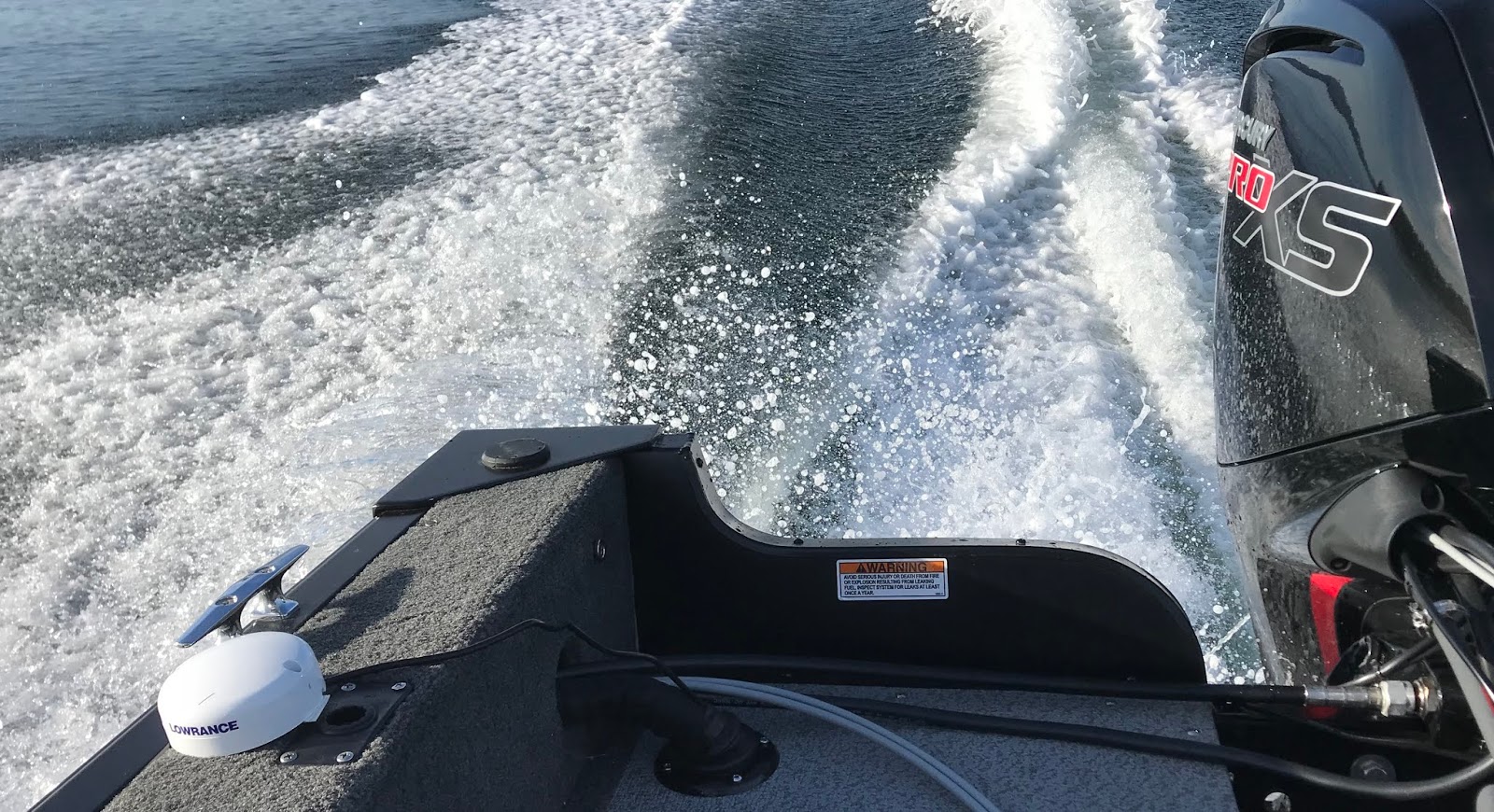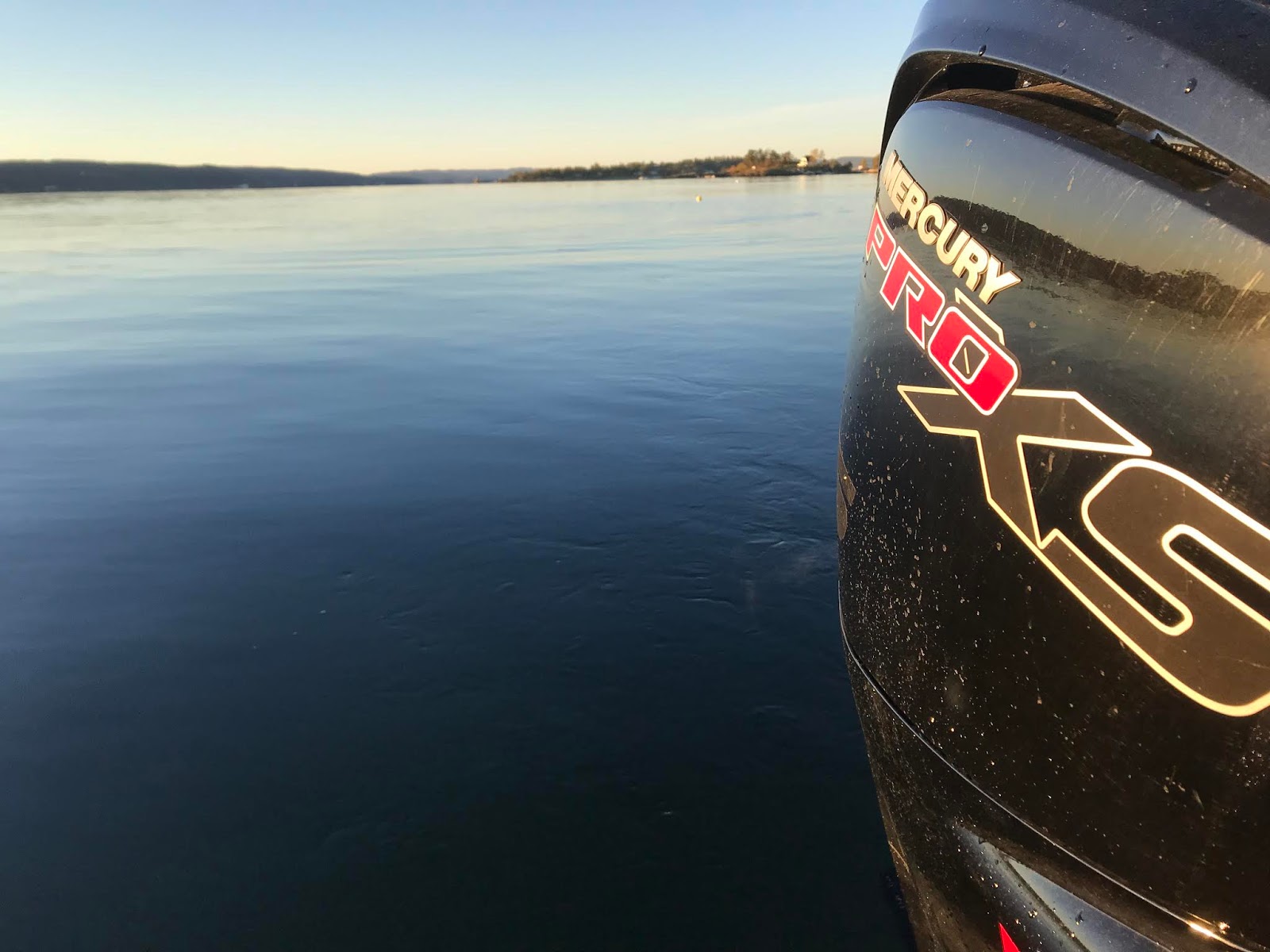 Bortsett fra selve fiskingen var det to tekniske ting jeg ville teste litt mer ute på vannet. Siden sist har min trofaste Airmar TM150M blitt pensjonert og en Airmar TM185HW har tatt dens plass. Da må selvfølgelig ting testes, ikke minst at ekkoloddgiveren har fått korrekt høyde og vinkel i forhold til båtens akterspeil.