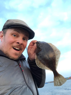 Det har blivit fyra pass varav ett blankade men jag fick en skrubba i Halmstad när jag, Calle och Simon fiskade ihop.
