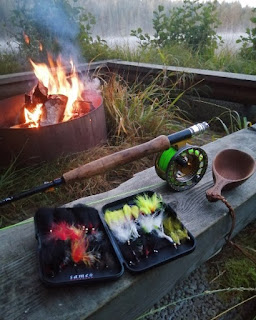 En vindstilla, solig morgon med vakande regnbågar, regnbågar på krokarna, korvgrillning & fiskeprat framför brasan. Härligt!