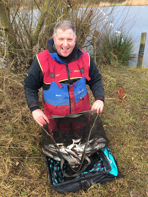 We had a wind all day from the left so 11/13m fishing was tough . Eventually i went from 11m to top 3 and top 4 fishing in about 3 feet of water . Talking with Dave we could have another match on there later in the spring next time on the larger pool . In the summer they have weights on waggler up to 100lb in Summer of Roach and bream/skimmers ! This has to be on the list !
