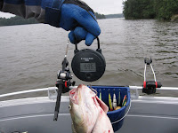 Efter en kort fight håvar Danne Aspen, riktigt stor Asp på 5,96 kilo.