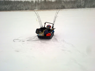 Slut för idag...tre fäll två landade mindre gäddor, tappade en bättre fisk i hålet...suck
