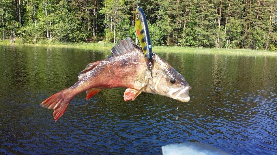 Hej. Jag fiskade gädda i stråken igår. Jag fick en konstig aborre som vart krokad i ryggen . Uppskattad vikt 1,5kg + då betet är 16 com så ser ni själva att detta är en stor kluns till aborre ! Den va va nästan helt livlös när jag fick den. Den låg på sidan på ytan och försökte lite ta sig framåt. Fenorna va väldigt slitna på den.