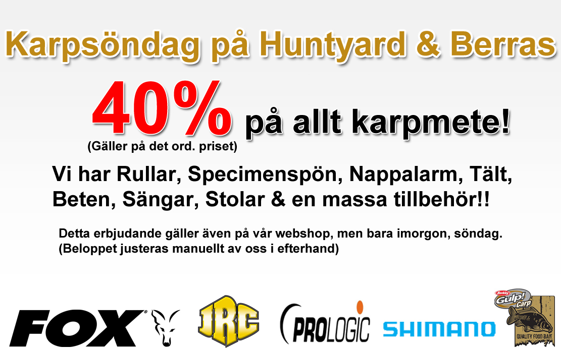 Imorgon är det sista dagen på vårt jubileum, då har vi valt att köra en utförsäljning på hela vårt karpfiske sortiment. Vi kör 40% rabatt på allt vi har i lager, detta gäller även på webshopen. (Vi justerar rabatten manuellt i efterhand)