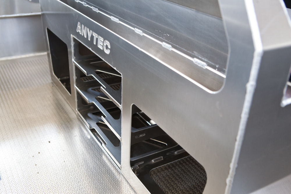 Bakom den bekväma aktersoffan, även den med stuvutrymmen, finns åtta riktigt rejäla spöhållare för användning under transport. På båda sidor om aktersoffan finns även en djuphavsrigg för dig som gillar trollingfiske.