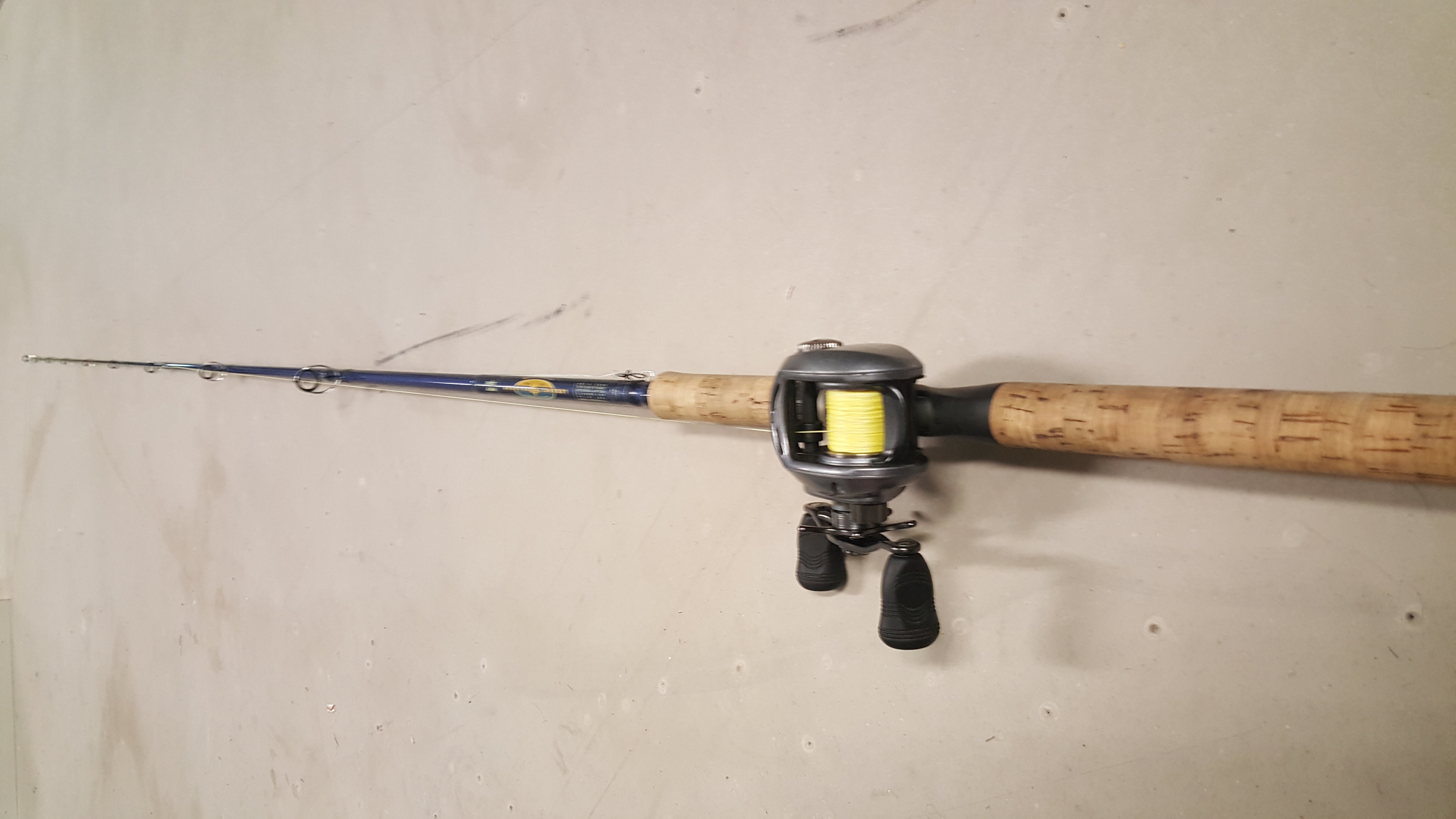 Sitter fräsch flätlina på rullen. Spöt är 7,3 fot och klassat till 2,5oz. Kastar dock väldigt bra upp till 130g. Mycket skönt spö för jerkbait och övrigt spinnfiske.