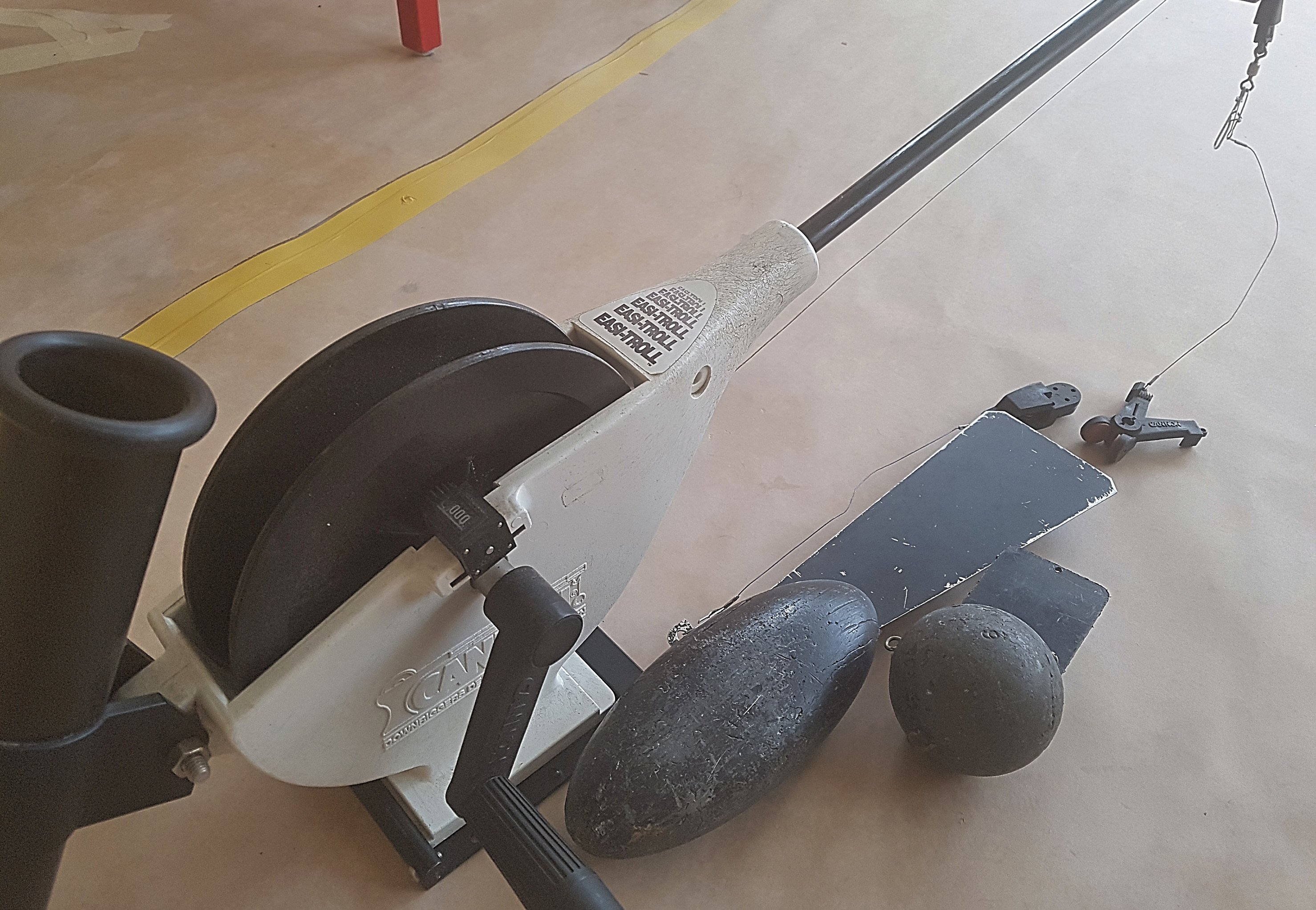 Bromsfunktion inbyggt i veven, snabbfäste och monteringsplatta räkneverk met angivelse I fot, 50cm bom. Prisidè 1000:-.
