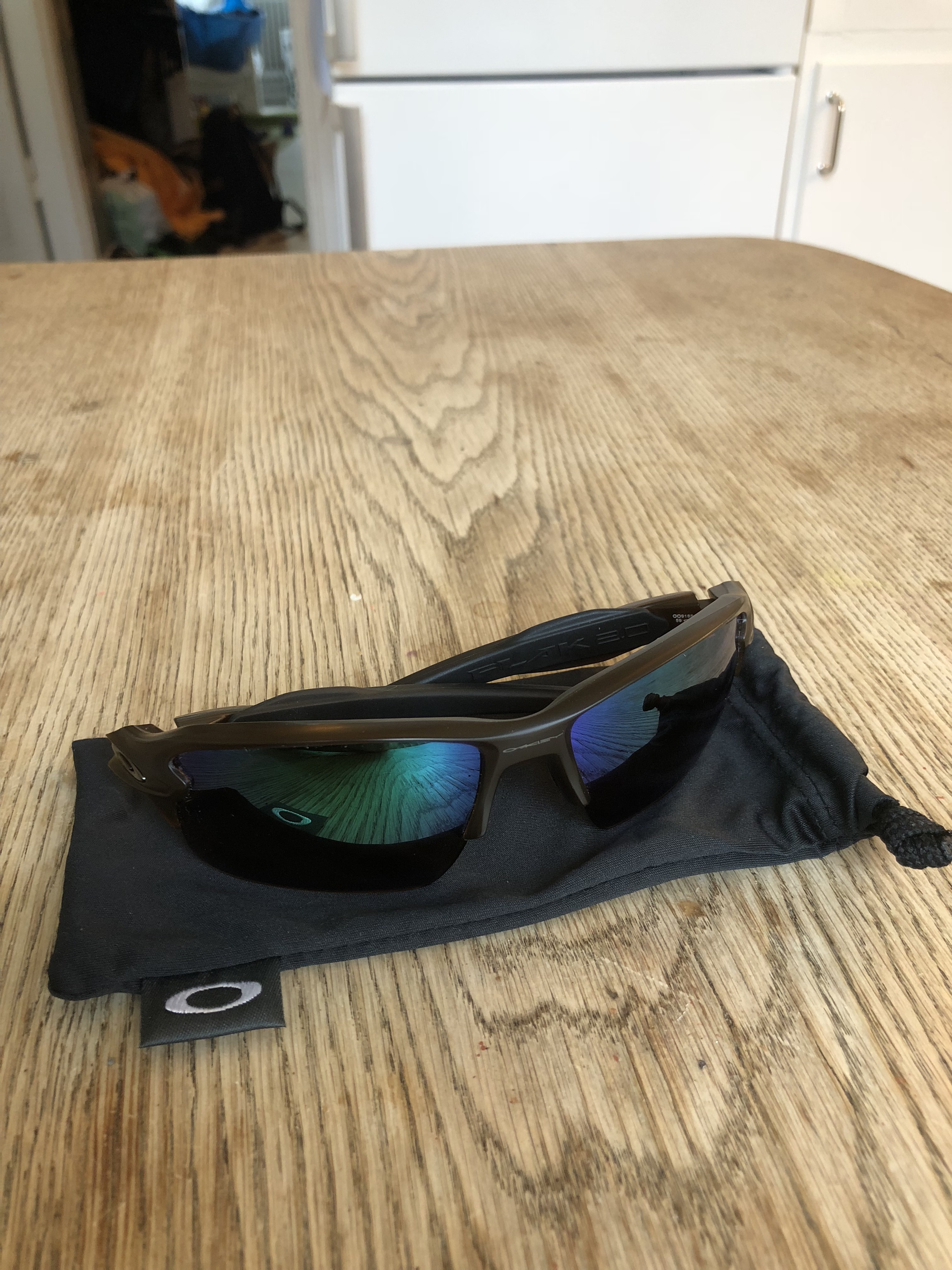 Oakley Flak 2.0 en present som tyvärr är lite i sportigaste laget för undertecknad. Dessa har heller inte kommit till användning och är alltså i nuäyskick. Brun båge och brunt glas.