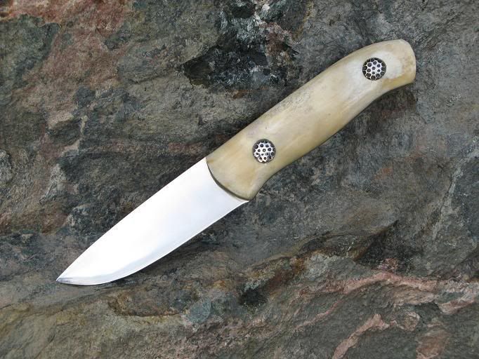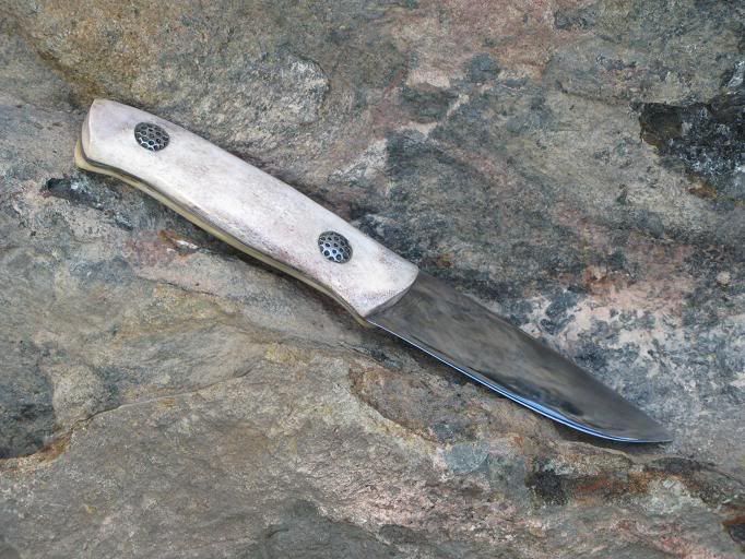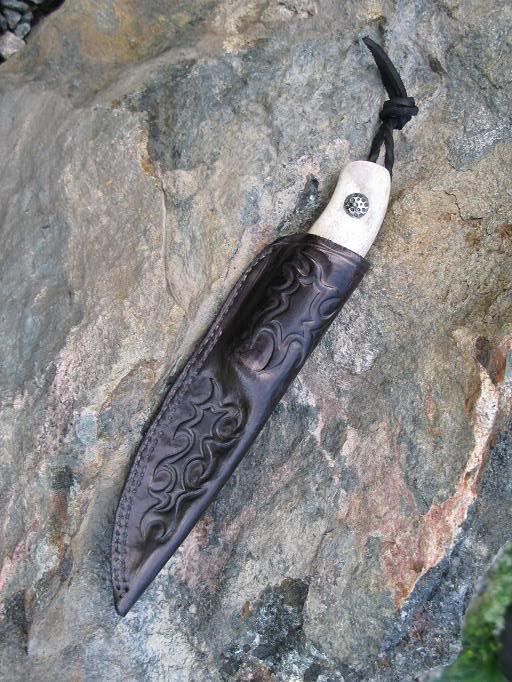 Säljer nu min senaste fulltånge i rostfritt stål. Bladet ca 7cm och hela kniven ca 18 cm. Skaftet av älghorn med pinns. Slidan är rårandsläder. Vass och bra att skärpa. Snabb affär 1000 kronor.