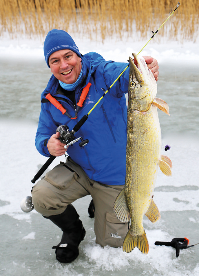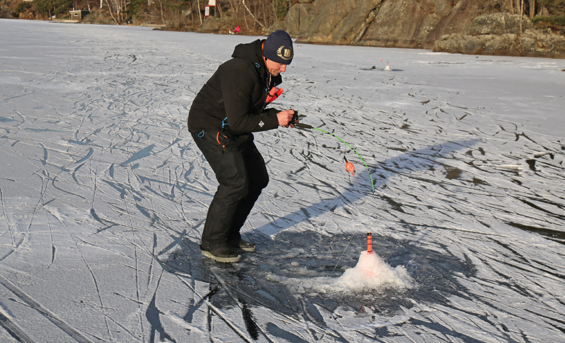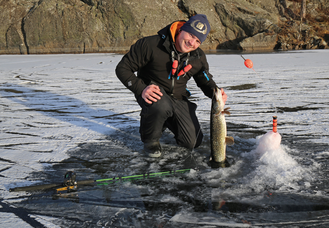 Ismete efter gädda är riktigt kul. Man får sådan direktkontakt med gäddorna när man drillar dem på de korta ismetespöna – och det är en skön känsla!