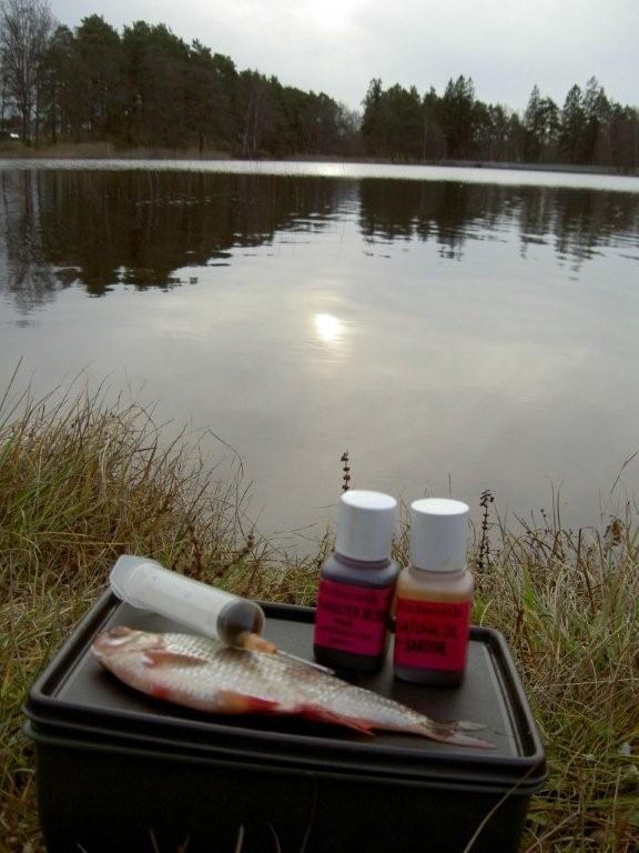 Gäddan har ett välutvecklat luktsinne och det räcker med 1 ml flavour i en hel Sill, man läser ibland att engelsmännen använder 5 ml, vilket är helt onödigt. Det visar bara att man kan nog inte överdossera ett gäddbete. När det gäller olika oljor är det igen Richworth och Eddie Turner som har dem absolut bästa och de oljor du bör prova är Sardine Oil, Lamprey Oil, Sandell Oil, Smelt och Mackerel Oil, de tillhör de mest effektiva på marknaden. Jag har också har stora framgångar med Prologics Salmon Oil, Sandeel Oil och deras Mackerel Oil och de är framför allt lätta att få tag på. Min favorit olja är fortfarande Pilchard Oil från Nutrabait, den finns i en winterized variant som är lättlöslig även i nollgradigt vatten.