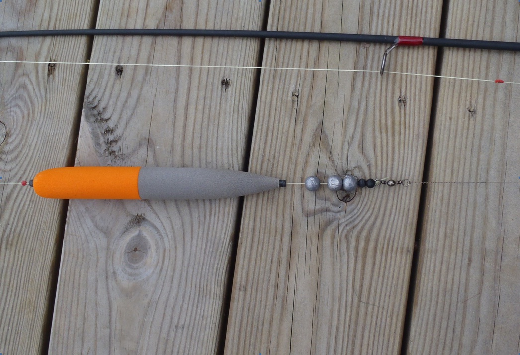 1.Flötesstopp – Dessa finns att köpa i gummi, speciella för flätlina eller nylon, eller så kan en stoppknut knytas med grov flätlina, garn eller motsvarande. Denna ska på linan först.