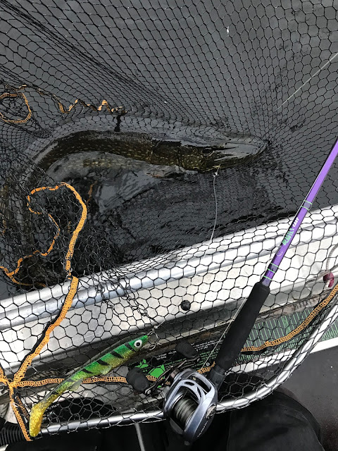 Fishing couldn't start any better. I had a good feeling when I casted my Steinfish in a shallow bay. I didn't take long until the first fish was hooked and for sure it was a really good fish. My new Renz-Stein Beastly Cast rod was for sure tested and the fish showed itself in the very beginning. There was no doubt that this fish reached +100cm and fortunately I had prepared my net. Soon enough she was secured and what a Christmas fish! 107cm and a weight of 9,75 kilos. Once again very close to the magic margin but still a very nice fish.