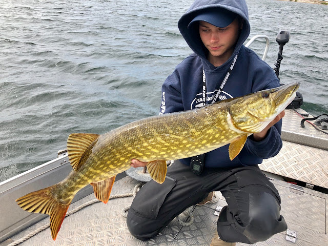 A few guided trips are also booked during the summer and last week I spent 4 hours with German guest Roland. He had never caught himself a pike but soon enough he was hooked up. A 106cm pike (8,5kgs) was his first ever pike and guess if he was happy! We ended up with one more fish of 108cm plus a few more small fish. It's hard to complain when weather was enjoyable with +25 degrees and low winds that day.