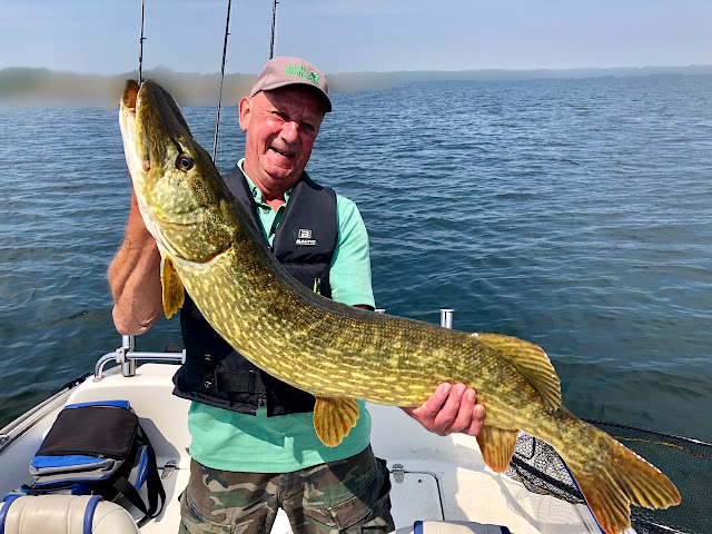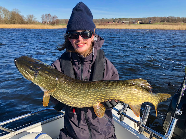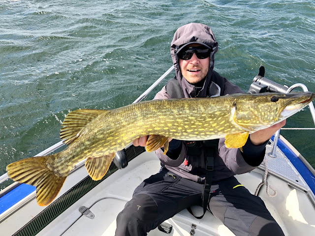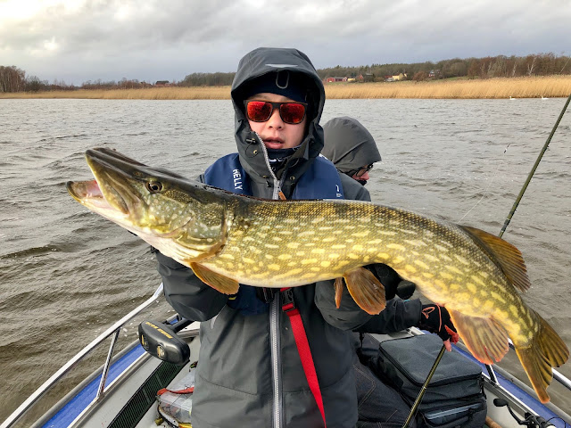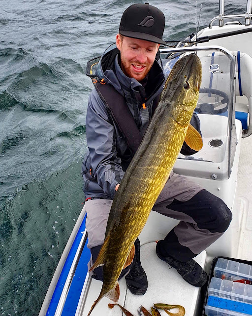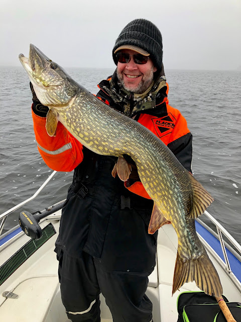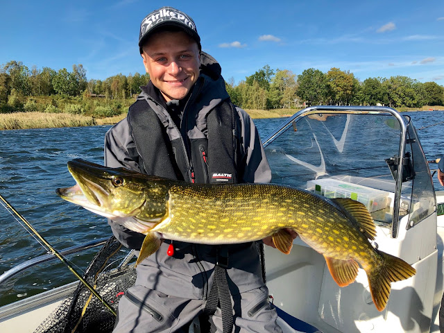 As you might know, Sarah also works at the camp since many years back, and she's been eager to catch a big fish to. Several times she have caught fish over +90cm, which isn't bad, but a meter pike has been her target (of course!). This time she managed to break the three digit mark with a beautiful fish! With shaky arms she was ready to give the fish a hug and a quick photo session. Not a bad way to start and to end the fishing season!