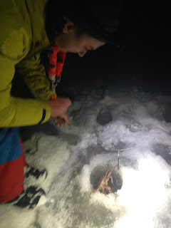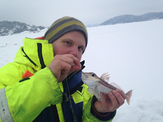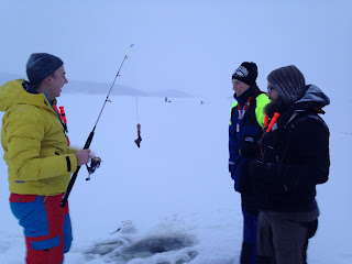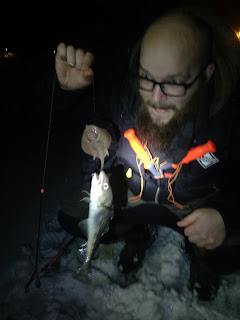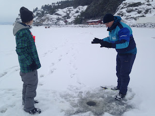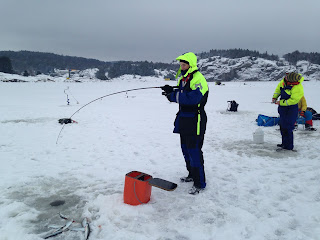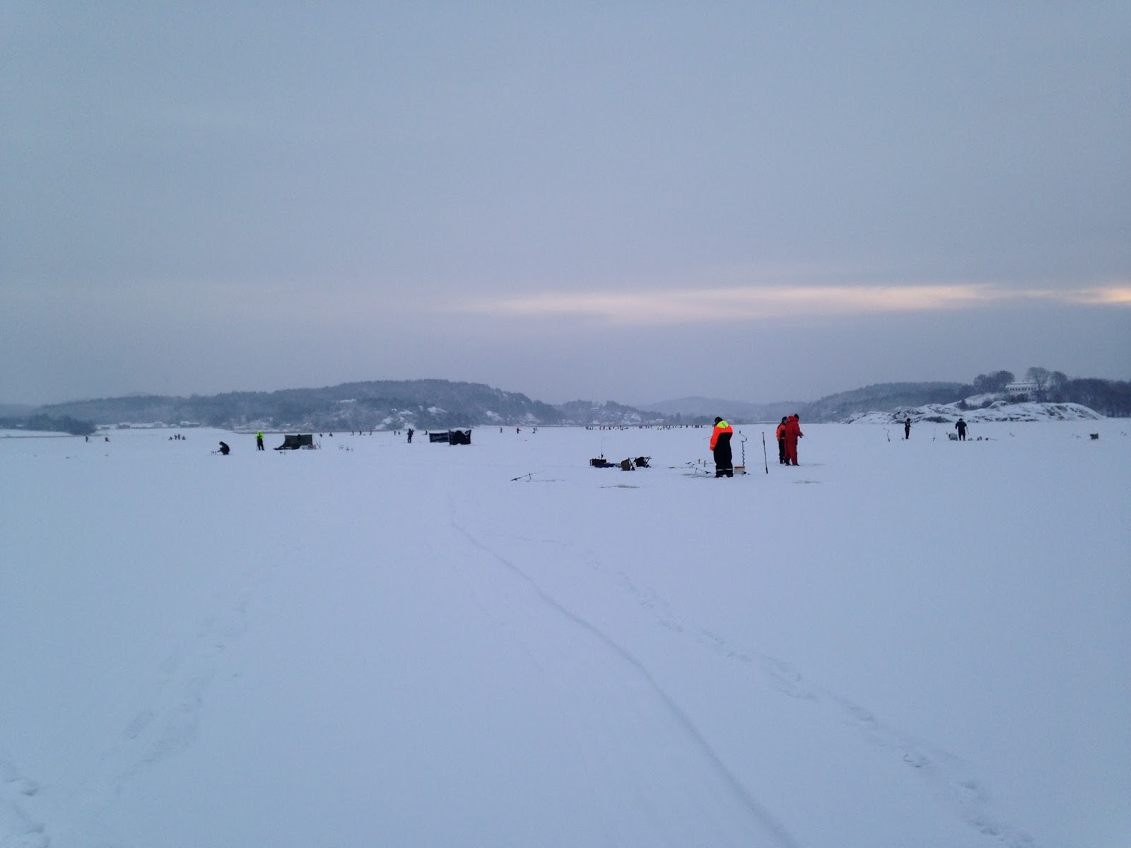 När vi kom fram till parkeringen i Skredsvik hade inte solen hunnit upp med det var redan några ute på isen, både sillfiskare och rockametare.