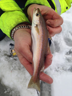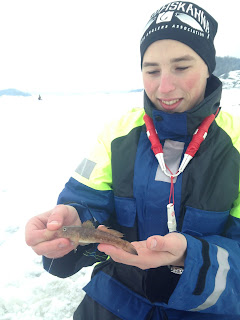 Och vilken imponerande start killen gör, första fisken för dagen är Rasmus 73:e art i Sverige och ett riktigt charmtroll - en slemindränkt pirål!!!