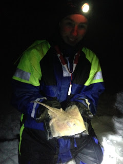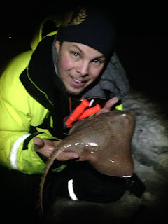 Vi hörde totalt om 15 fångade rockor i Skredsvik denna dag vilket måste ses som ett historiskt bra fiske. Dessutom kom det upp rariteter som bergvar och lerskädda från isen denna dag som istället för strålande sol bjöd på snö, kall nordan och stålande fiske!