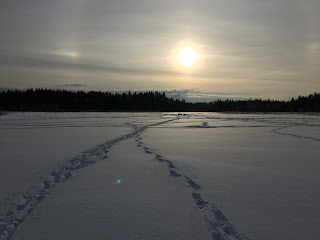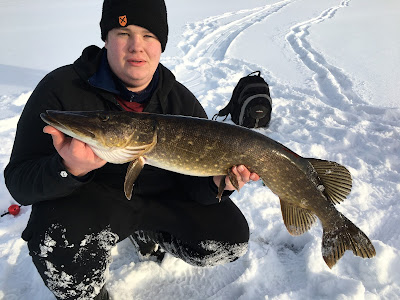 Igår så åkte jag, Fredda och Emil lite nedåt i landet för att prova lyckan efter de gröna bestarna! Väl framme vid sjön runt 05.30 så begav vi oss igenom skogen en liten distans innan vi tillslut var ute på isen, stället vi skulle på såg mycket större ut i mörkret men när det väl ljusnade så visade det sig att viken inte ens var hälften så stor som vi trodde, men vi körde på ändå!