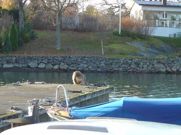Dagens fisketur skiljer sig lite från de vanliga. Inte bara för att jag bommade under ett HÖ-pass, utan mer på det sättet dagen började på. Polarn är lite sen till båten så jag ställer upp grinden till bryggan & håller på & riggar utrustningen mm. Då ser jag att en vovve irrat sig ut på bryggan men varken husse eller matte syns till. Jag fortsätter fixa med prylarna & vovven fortsätter ut på bryggan, när han/hon är just framför båten, typ 3-4 meter ifrån mig inser jag att det inte är en helt vanlig vovve utan en VARG. Vargen ser ju såklart mig (det gjorde den garanterat långt innan jag såg den) & fortsätter lunka ut på bryggan. Sedan tar vargen sig ett dopp i det 7,3 gradiga vattnet & simmar över viken & upp på en villatomt. Säl & havsörn har man ju sett under fisketurer, även älgar & rådjur, men detta lär man sent glömma.