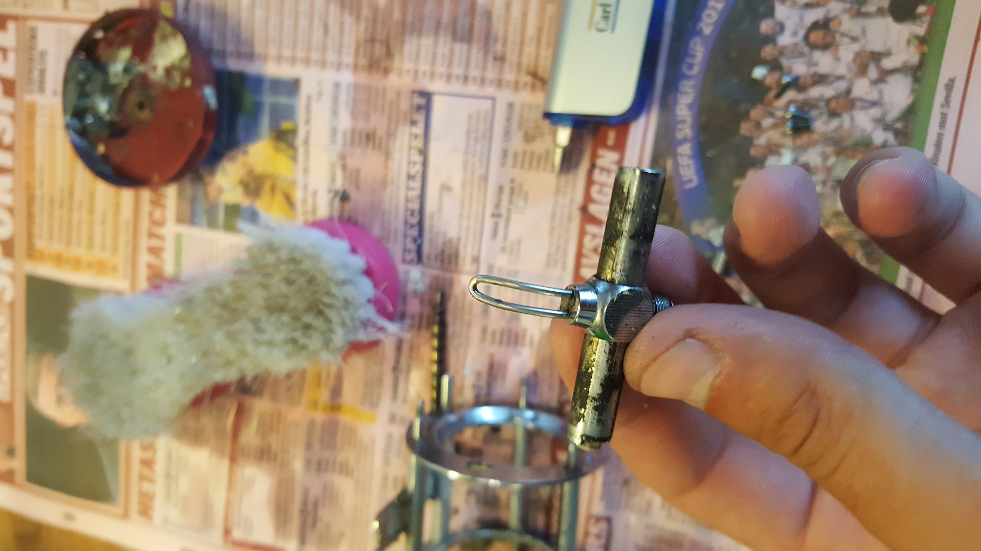 Med en uppfälld tidning som underlag, en tråd angående rullservning här på fiskesnack (Tack Mooki) som hjälpmedel samt en hink med varmvatten och diskmedel påbörjade jag min relativt korta resa med detta sorgebarn. (Jag vill redan nu förvarna för min terminologi angående rullen och dess komponenter då jag aldrig skruvat isär en rulle förut och vet inte vad allting heter)