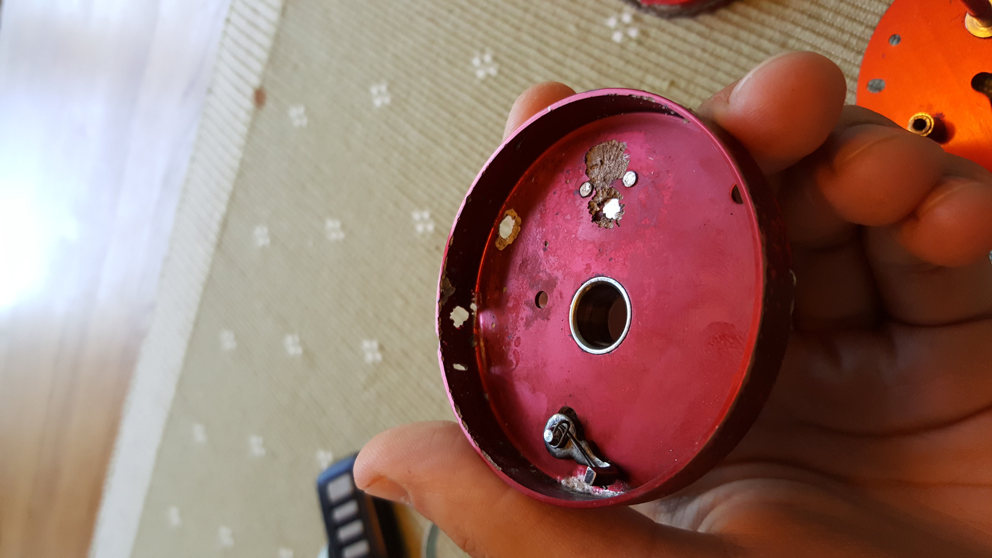 Linspolen undersöktes närmare och det var ingenting jag kunde göra, den var helt totalförstörd, däremot så behövde drevet till spolen samt pinnen en putsning.