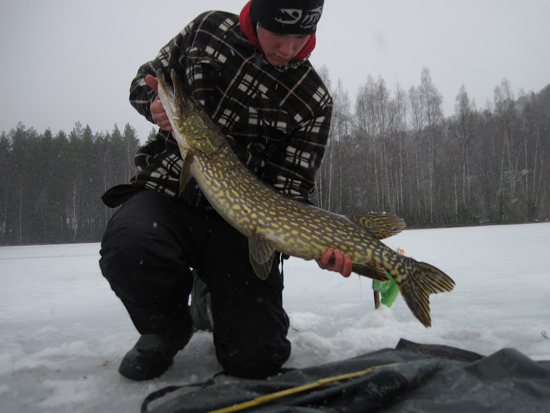Noen ganger er det ren, skjær idioti og dra ut for å fiske. Det kan vel sies om dagen i går. Det snødde og blåste så fælt at jeg ikke visste hvor jeg skulle gjøre av meg. Fikk heldigvis fyr på ett bål etter noen forsøk, noe som gjorde at jeg holdt ut i 6 timer. Det skjedde ingenting de første 4 timene, men da jeg tok ibruk kreativiteten og hang på ett "seil " på ett par av angeldonene, tok det ikke lang tid før det smalt.